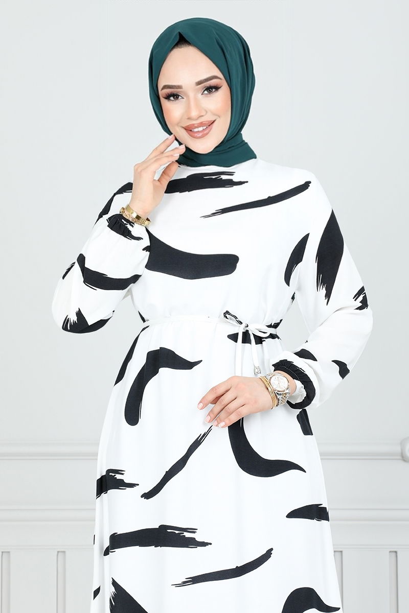Robe en viscose à motifs EcruKumas Caractéristique: Il est fait de tissu viscose. Il peut être utilisé en quatre saisons saisonnières. Caractéristique du produit: Le hijab de la nouvelle saison est un produit de mode. Le produit est un collier demi-juge. Il n'est pas doublé. Le produit est zippé à l'arrière. La ceinture est incluse dans le produit, elle ne peut pas être utilisée sur demande. Le brassard est caoutchouté.Il peut y avoir une différence de tonalité dans le produit en raison de séances photo conceptuelles. Lavage: Le lavage des mains doit être fait. Caractéristique de la ceinture: Les deux extrémités de la ceinture sont cousues pour éviter que la ceinture ne fluctue, la partie centrale est laissée vide (sans couture). (Le produit sur le modèle est de taille 1.) La robe en viscose à motifs élégante et confortable a un design portable quatre saisons. Cette robe hijab est faite de tissu viscose léger et respirant. Tout en offrant un look moderne avec un col demi-Dominant, il est facile à porter et à enlever avec un détail de fermeture éclair au dos. La ceinture incluse dans le produit minimise les fluctuations grâce au fait que les deux extrémités sont cousues. La ceinture peut être retirée en option. Les poignets de la robe sont caoutchoutés et offrent une utilisation confortable. Gardez votre élégance au quotidien et lors d'occasions spéciales avec cette robe lavable à la main.Poids(Kg):0.49