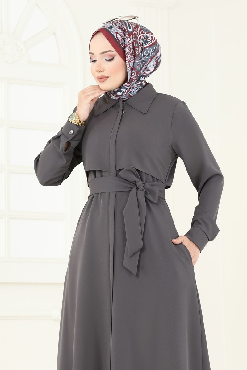 عباءة رمادي غامق 23021UKB139-MS