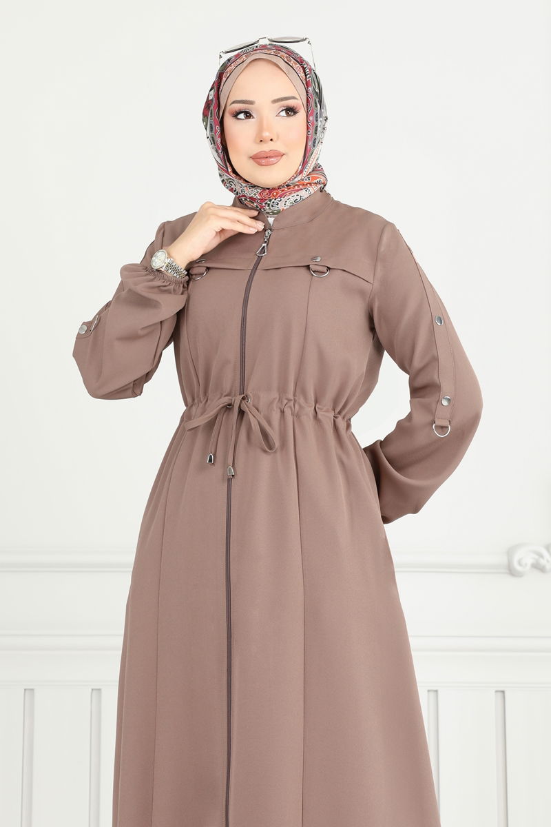 يتميز بخصر ذو أربطة. المنتج لديه ياقة نصف بيضوية. غير مبطنة. المنتج به سحاب في جزء من الأمام. الجيب متاح. السوار مطاطي. قد يكون هناك اختلاف في الدرجة اللونية في المنتج بسبب التقاط الصور الفوتوغرافية.