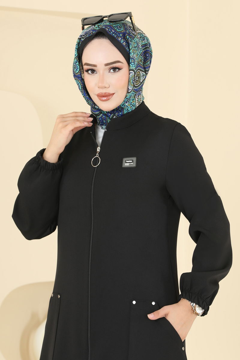 Product Feature : It is a new season hijab fashion product. The product has a Judge collar. Unlined. The product has a zipper at the From the front part. The coat of arms detail is sewn. The product has a pocket. The cuff is rubberized. There may be a tonal difference in the product due to concept photo shoots.