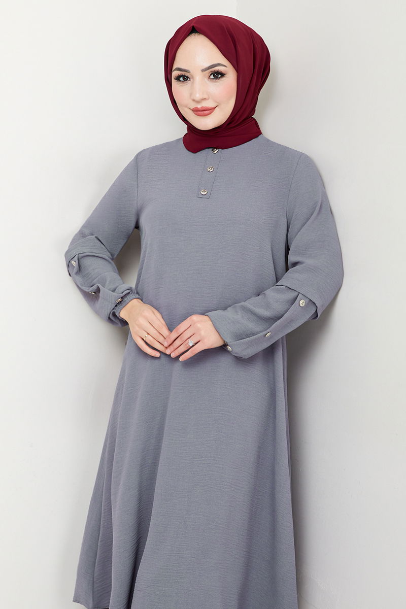 Accessory Buttoned Suit GriKombine Products Including : Tunic and trousers. Fabric Feature: It is made of aerobin fabric. It can be used in Four Seasonal seasons. Product Feature: New season hijab is a fashion product. The product is a bicycle collar. It is unlined. Buttons are accessories. The waist of the trousers is elastic. The cuff is rubberized. There may be a tonal difference in the product due to concept photo shoots. Washing : IT CAN BE WASHED WITHOUT TIGHTENING AT 30 DEGREES.(DELICATE WASHING) (The product on the model is size 40.) The Suit with Accessory Buttons is an elegant and stylish example of hijab clothing. Thanks to the aerobin fabric, it can be used easily in all seasons. It can be washed at 30 degrees with precision washing. Elastic cuffs and elastic waist offer a comfortable use in the design of tunics and trousers. Buttons attract attention as a stylish accessory. This product is ideal for both everyday and special occasions.Weight (Kg):0.62