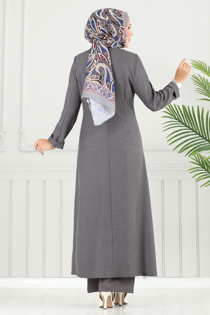 The Accessory Pocket Sofia Set is an elegant and modern design suitable for wear in all seasons under modest fashion guidelines. Featuring a mandarin collar and unlined design for optimum comfort. The trousers have an elastic waist guaranteeing comfort throughout the day, while the shirt-style top comes with half-buttons for ease of use and a stylish appearance. Ideal for both everyday wear and special occasions, the Sofia Set can be washed gently at 30 degrees. The displayed model wears a size 38, with options available for all sizes.