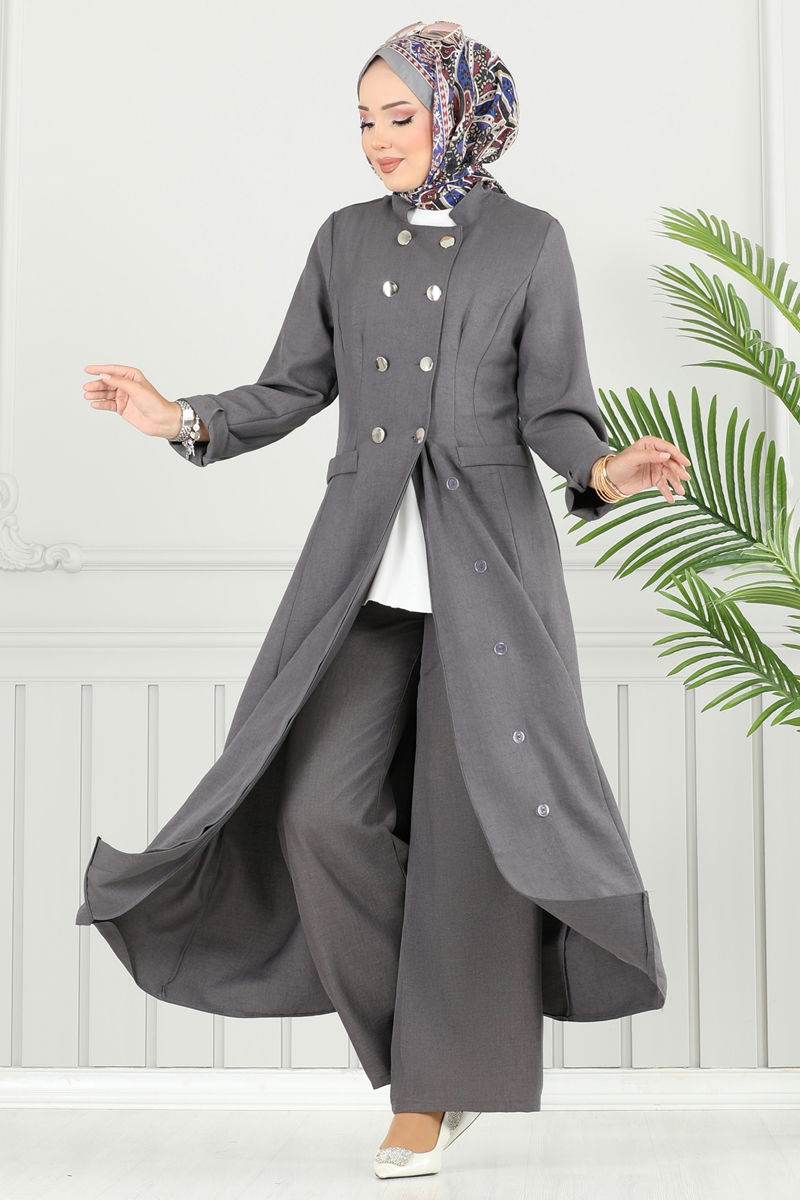 Product Feature : It is a new season hijab fashion product. There are half buttons available from the front. The product has a Judge collar. Unlined. Pocket detail is an accessory. The waist of the trousers is elastic. There may be a tonal difference in the product due to concept photo shoots.