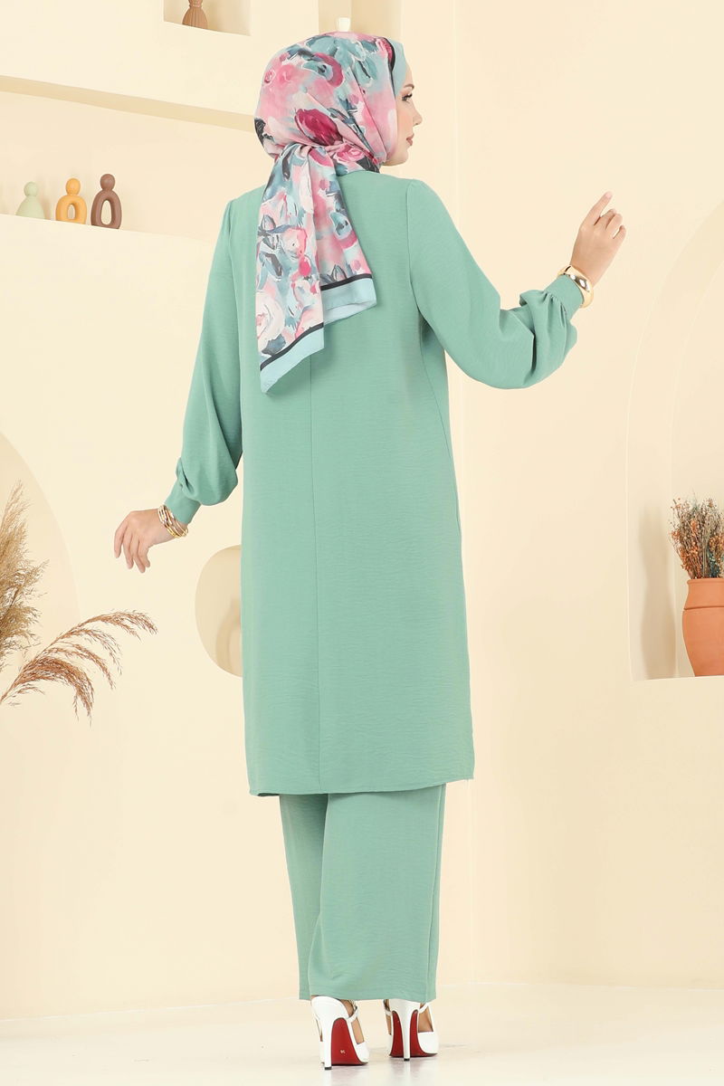 Product Feature : It is a new season hijab fashion product. It has a button that can be used from the back. The product has a Cycling collar. Unlined. Buttons are accessories. The waist of the trousers is elastic. Cuff buttons are active. There may be a tonal difference in the product due to concept photo shoots.