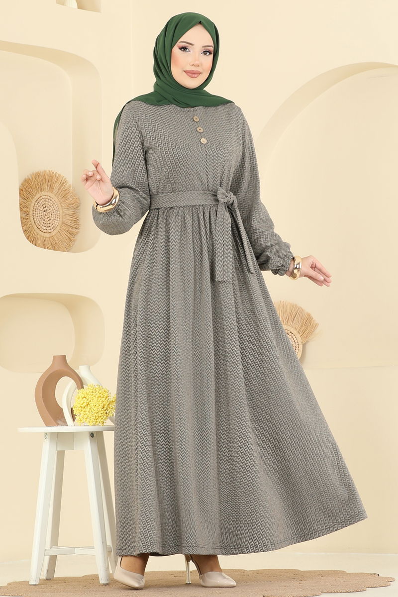 Aksesuar Düğmeli Balıksırtı Elbise 4133PM271-MS Vizyon
