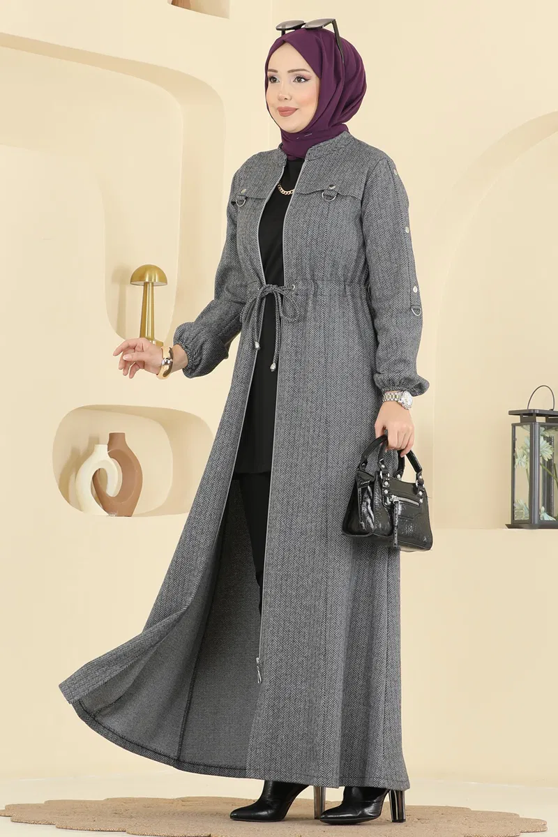 Aksesuar Düğmeli Balıksırtı Ferace 24013UKB139-MS Gri
