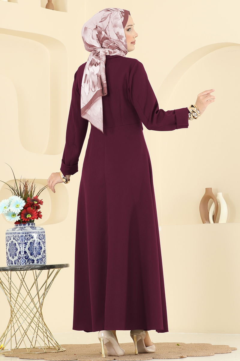 Aksesuar Düğmeli Dabıl Elbise 2746SL432-MS Bordo
