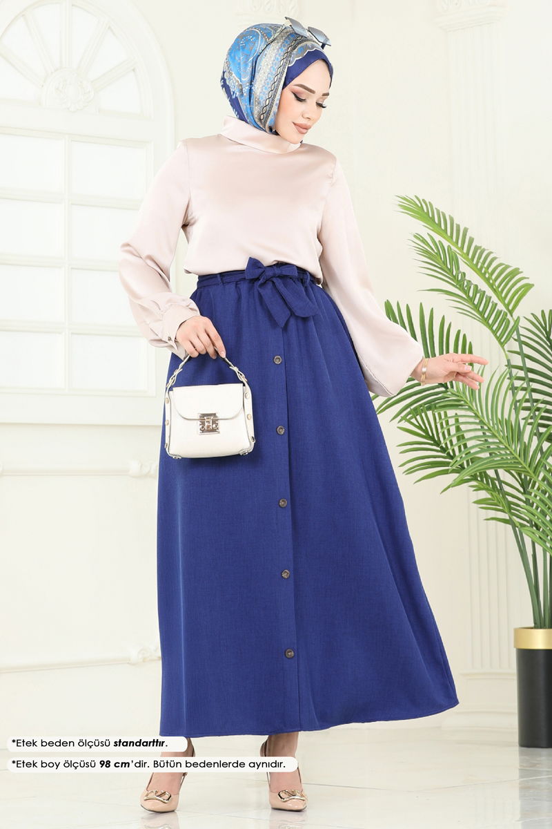 Ürün Özellikleri: Tesettür giyimde yeni sezon trendlerini yansıtan bir modeldir. İç astarı bulunmamakta olup, süs amaçlı düğmeler eklenmiştir. Kemer bu ürüne dahil, kullanımı kişiye bağımlıdır. Etek bölümü elastik yapıdadır. Renk tonları çekim koşullarına göre değişiklik gösterebilir.