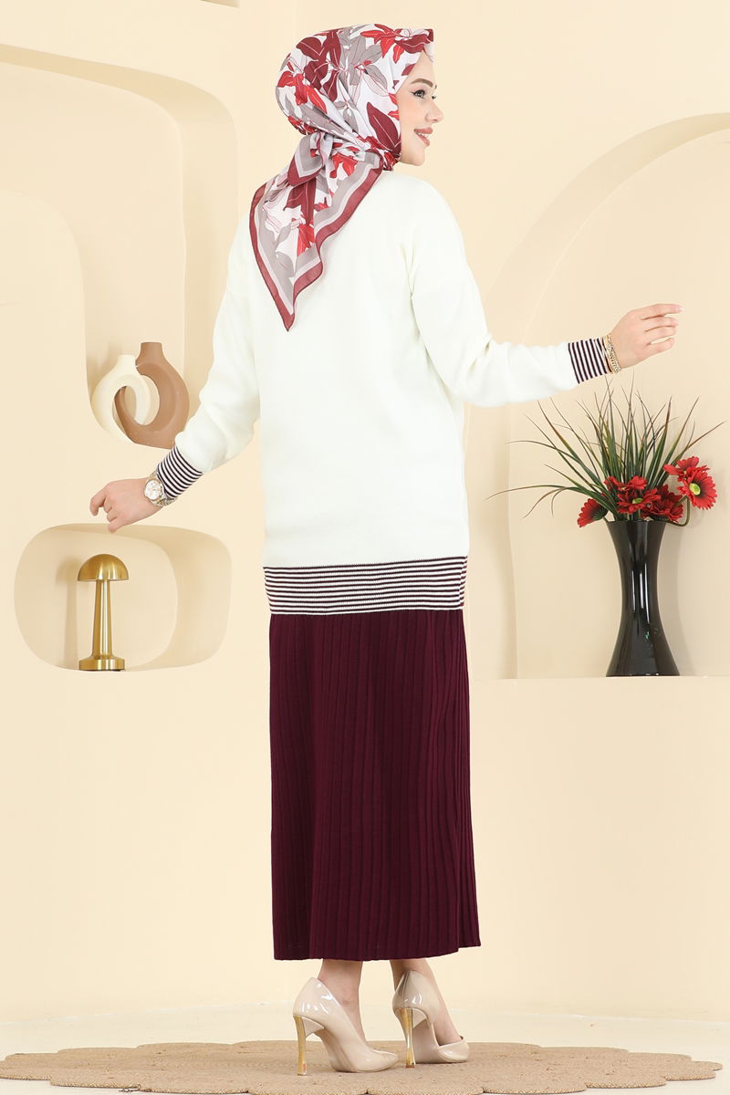 Tesettür Düğmeli Etekli Takım - Bordo Rengi