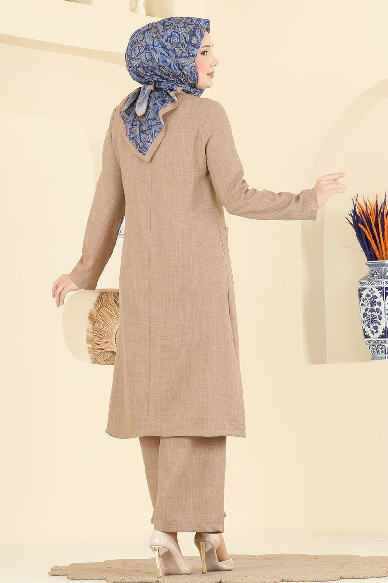 Aksesuar Düğmeli Keten Takım 367MP806-MS Bisküvi