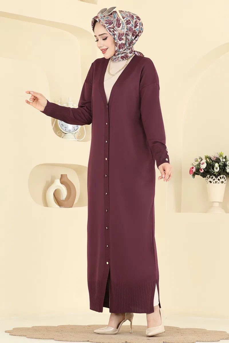Aksesuar Düğmeli Merserize Hırka 3250BRZ597-MS Mürdüm