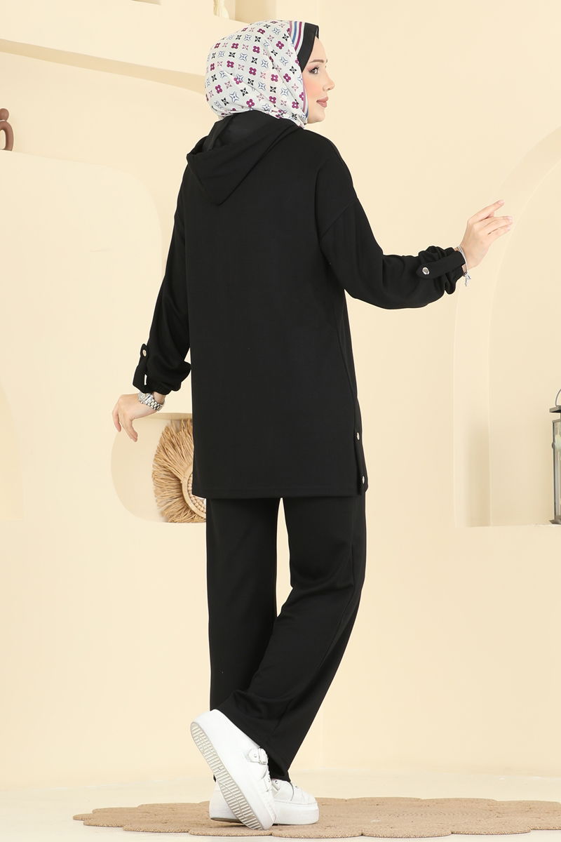 Modal Kumaşlı Siyah Aksesuarlı Takım Seti
