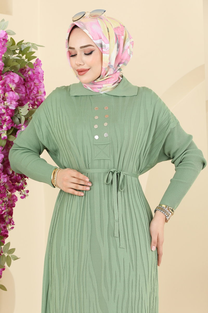 Aksesuar Düğmeli Triko Elbise 211440TPK1167-MS Çağla