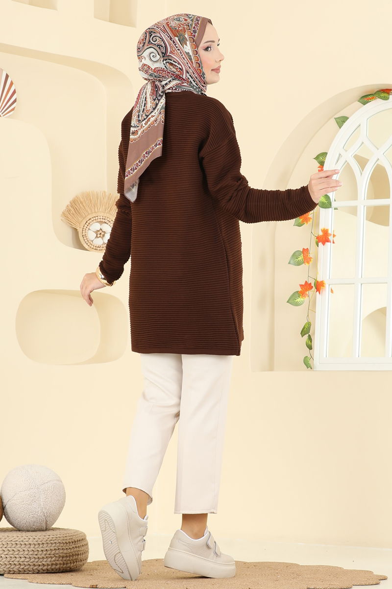 Aksesuar Düğmeli Triko Tunik 2735AYD574-MS Kahve