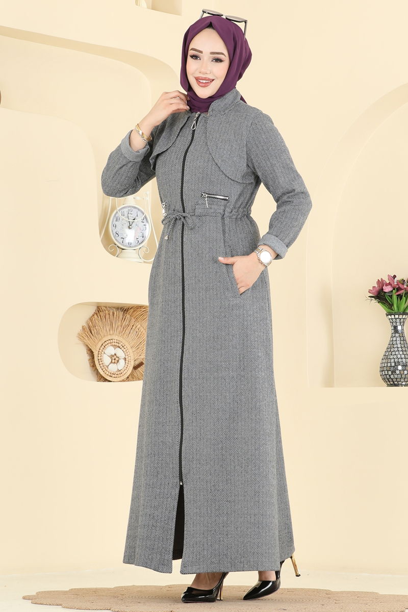 Aksesuar Fermuarlı Balıksırtı Ferace 25014UKB139-MS Gri
