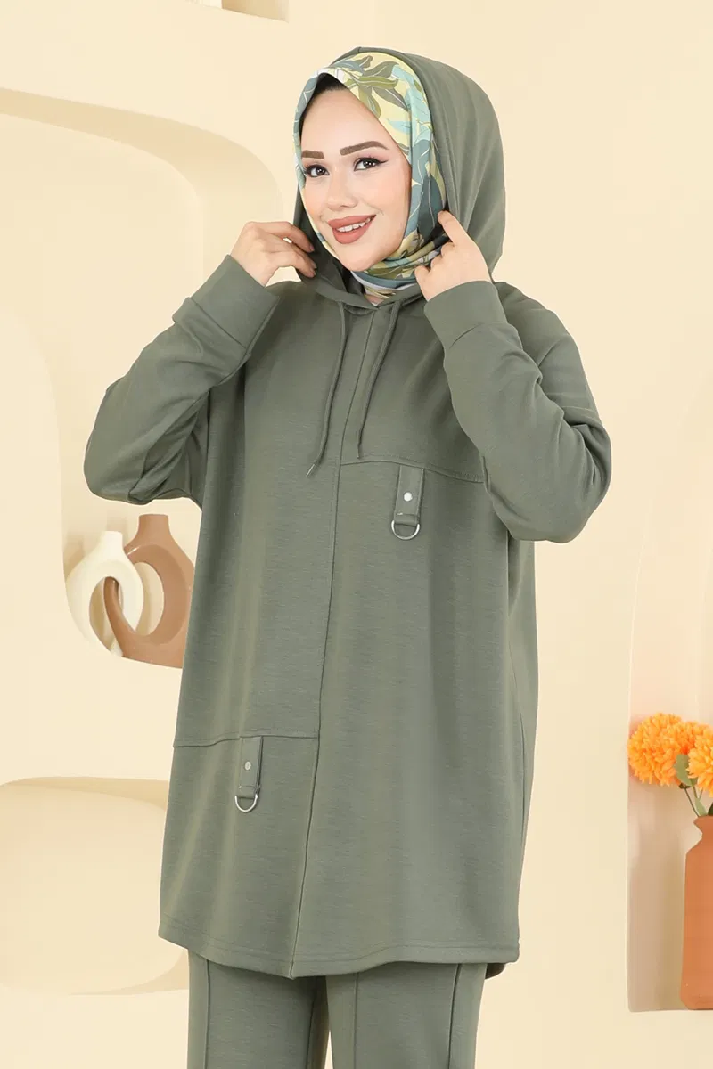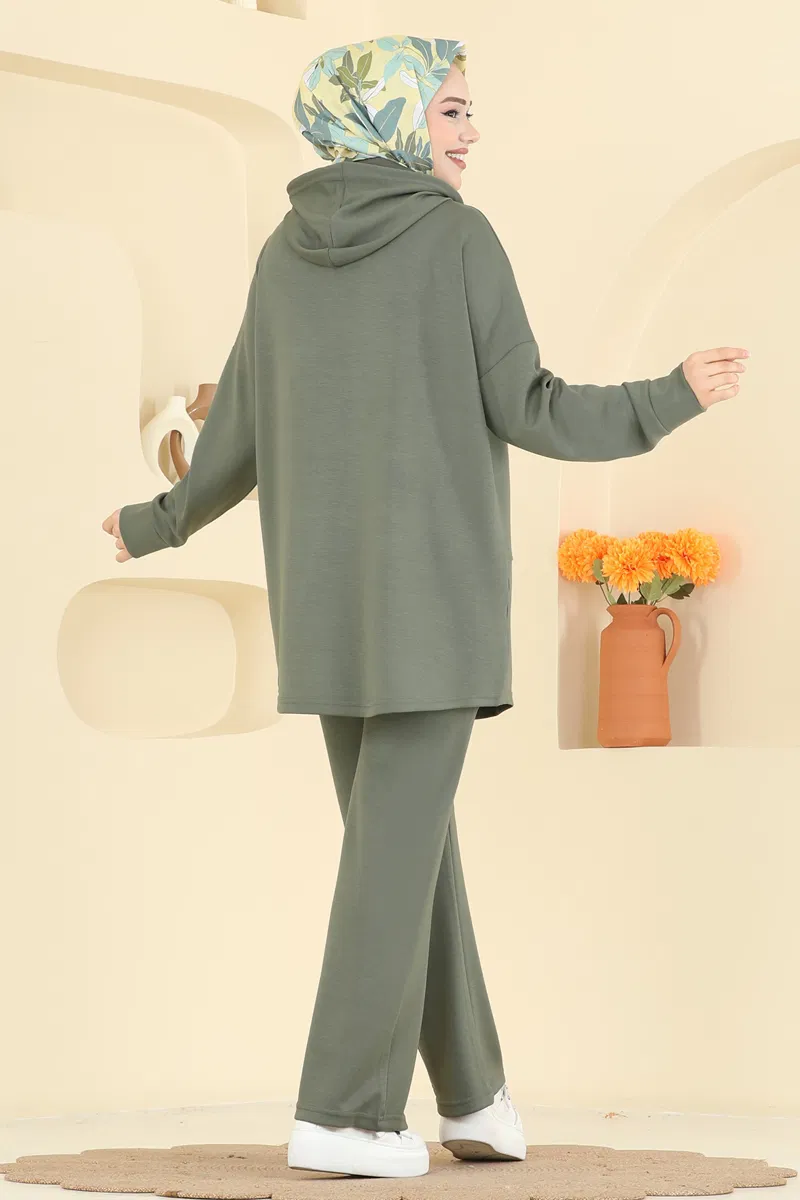 Tesettür Modal Takım - Haki Renkli