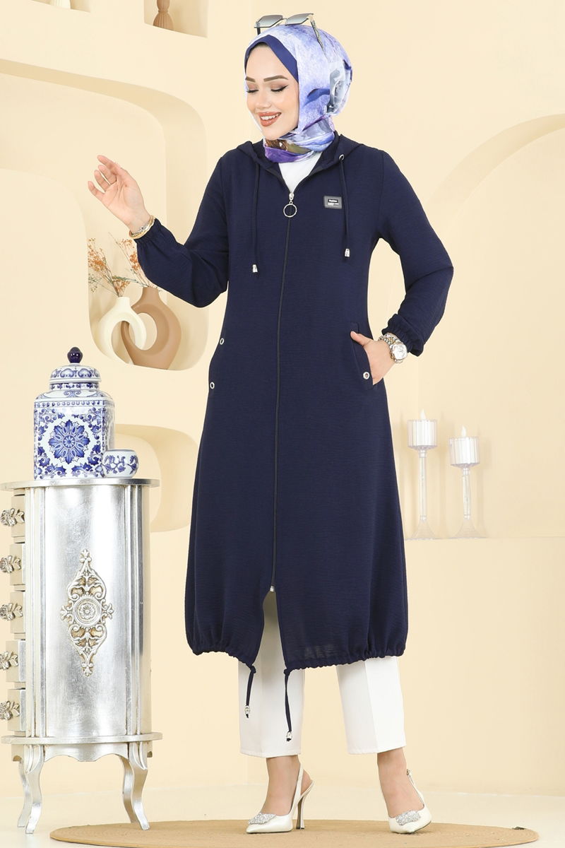 Product Feature : It is a new season hijab fashion product. The product has a Hooded collar. Unlined. The product has a zipper at the From the front part. The hood is sewn to the product. Pocket available. The cuff is rubberized. There may be a tonal difference in the product due to concept photo shoots.