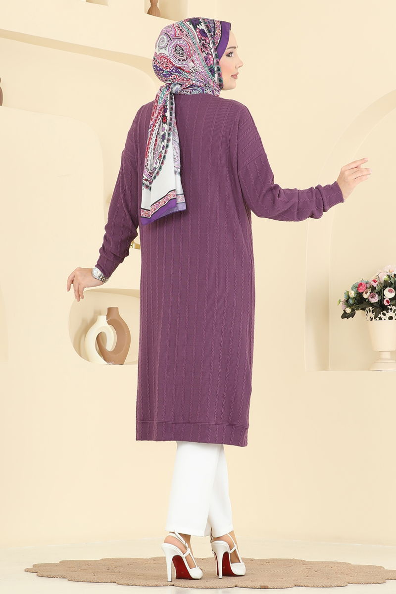 Arma Detaylı Burgu Hırka 200BO429-MS Koyu Lila