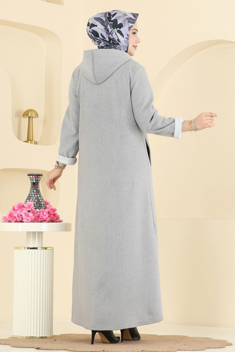 Arma Detaylı Kaşe Ferace 158ART1138-MS Gri