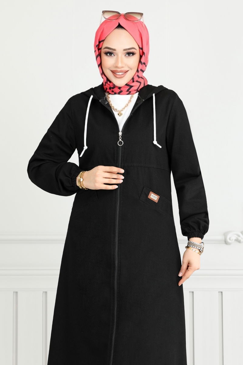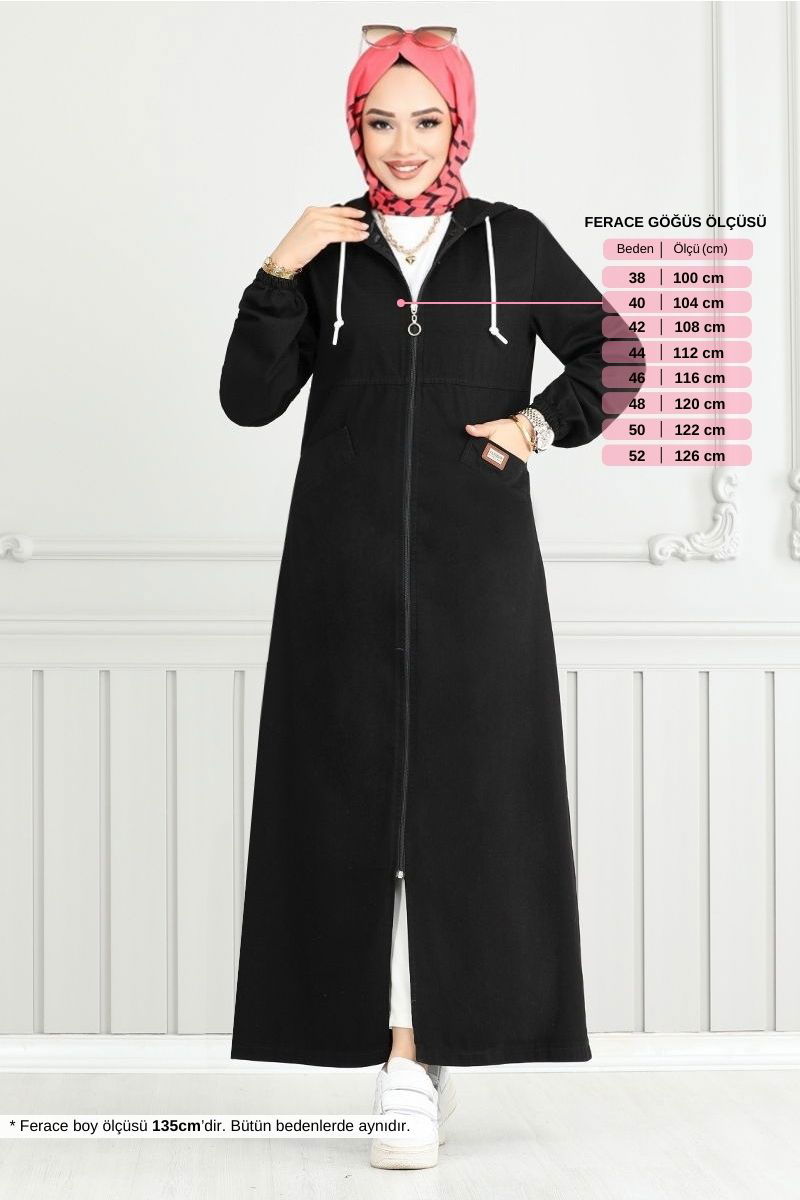 Jeans with a Coat of Arms Ferace SiyahKumas Feature: They are made of denim fabric. It can be used in Four Seasonal seasons. Product Feature: New season hijab is a fashion product. The product is a Hooded collar. It is unlined. The product is zipped from the front. The rigging detail is sewn. The hood is sewn to the product. Pocket is available. The cuff is rubberized.There may be a tonal difference in the product due to concept photo shoots. Washing : IT CAN BE WASHED WITHOUT TIGHTENING AT 30 DEGREES.(DELICATE WASHING) (The product on the model is size 38.) Decked Jeans Ferace offers elegance and comfort in hijab clothing together. This ferace, which can be worn for all four seasons, has the ability to be cleaned with sensitive washing at 30 degrees. While it offers a practical use with its hooded and zipper design, it has gained a stylish appearance with its rigging details. This model, which is made of denim fabric, is light and comfortable with its unlined structure. The pockets and rubberized cuffs found in the product add functionality.Weight (Kg):0.63