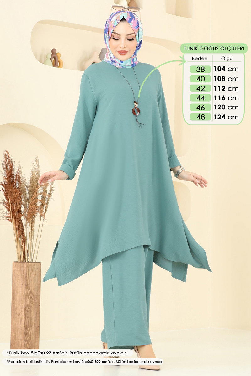 Asimetrik Kesim ve Kolyeli Takım - Mint Renk