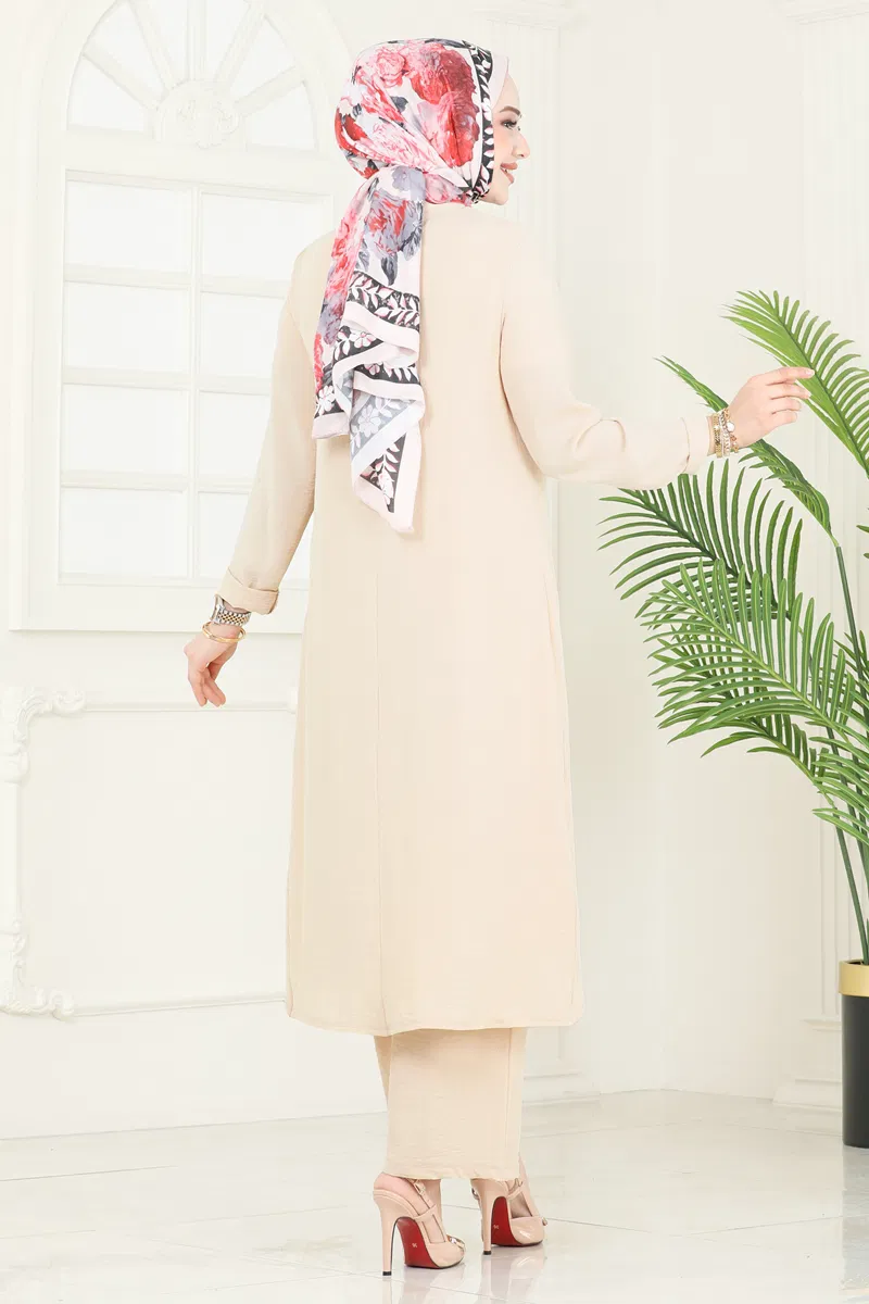 Asimetrik Kesim Tesettür Takım 353DVL817-MS Açık Vizyon