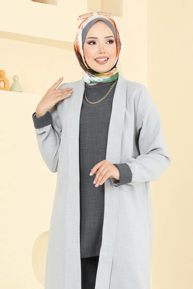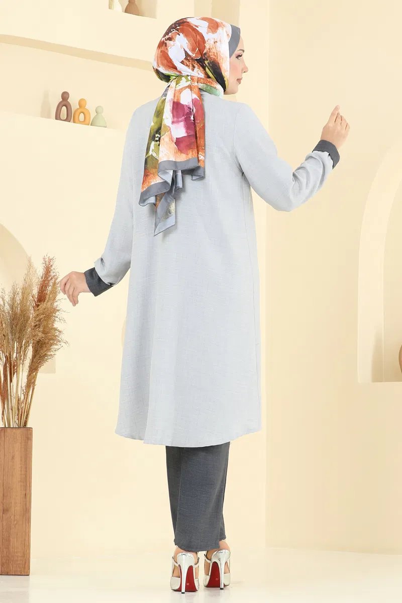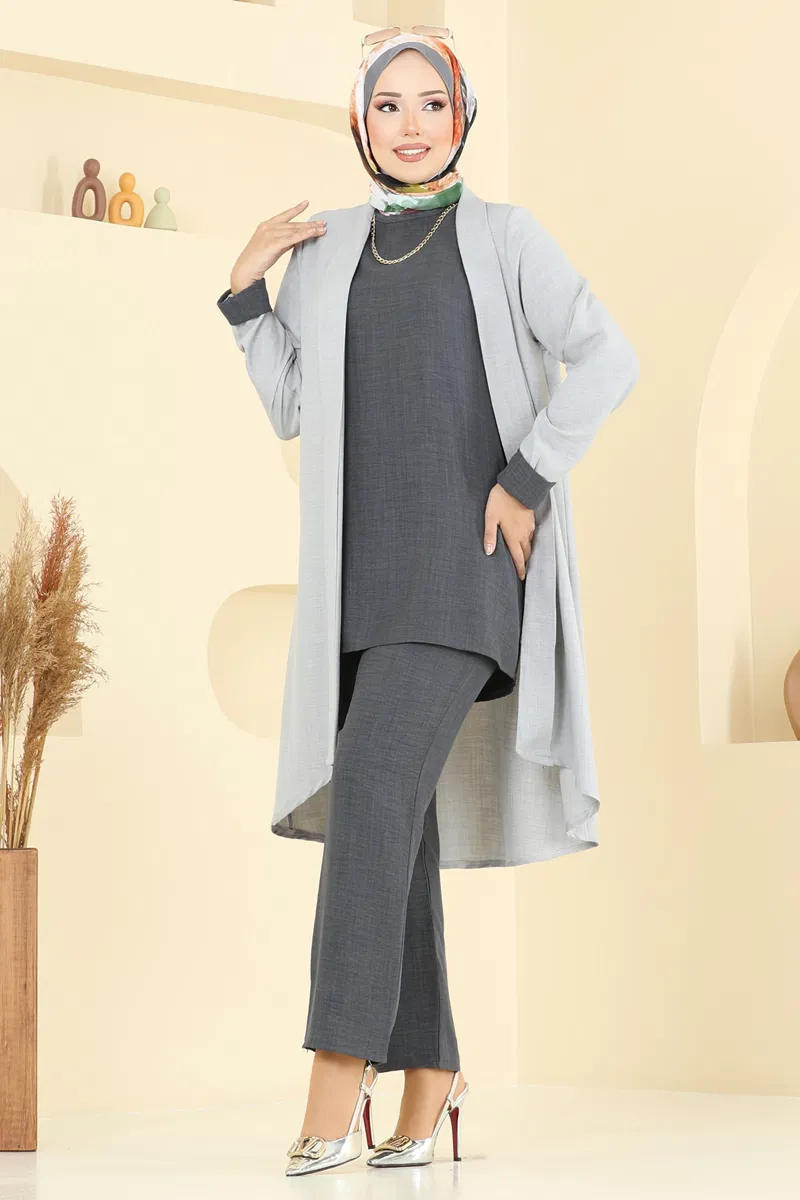 Asimetrik Kesim Üçlü Takım 3129HBS856-MS Gri&Antrasit