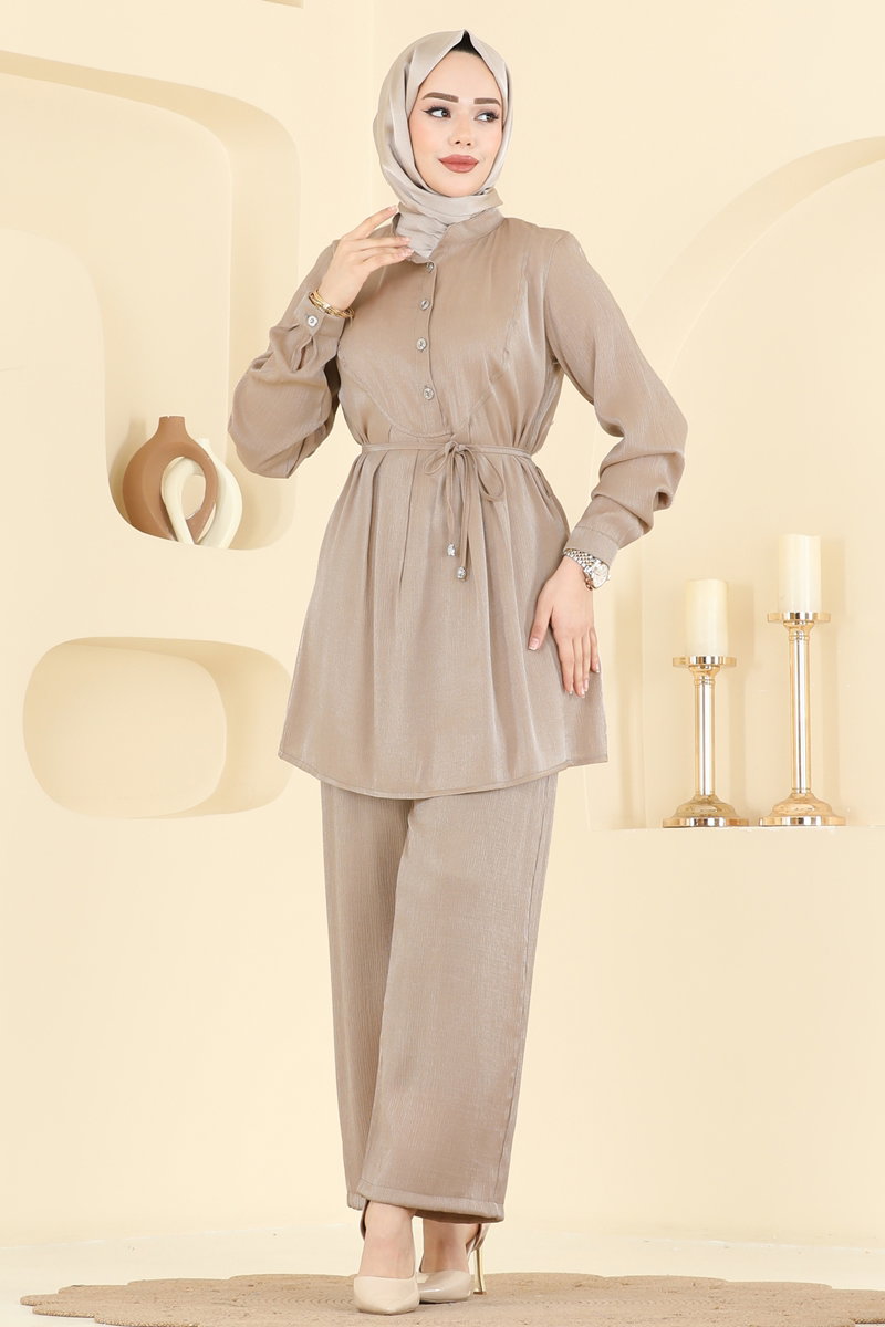 Ürün Detayları: Moda dünyasının en yeni tesettür giyim ürünlerinden biridir. Pantolon cep detayına sahiptir. Ürün yarı hakim yaka tasarımına sahiptir ve ön kısmından yarım düğmeli olarak kullanılabilir. Astar içermez. Bağcıklar çıkarılabilir şekilde tasarlanmıştır. Pantolonun bel kısmı elastiktir ve manset düğmeleri fonksiyoneldir. Fotoğraf çekimleri nedeniyle renk tonlarında farklılık olabilir.