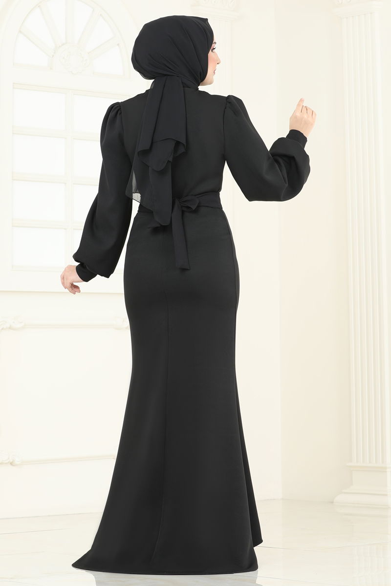 Balon Kollu Balık Abiye Elbise 0402ALG474-MS Siyah