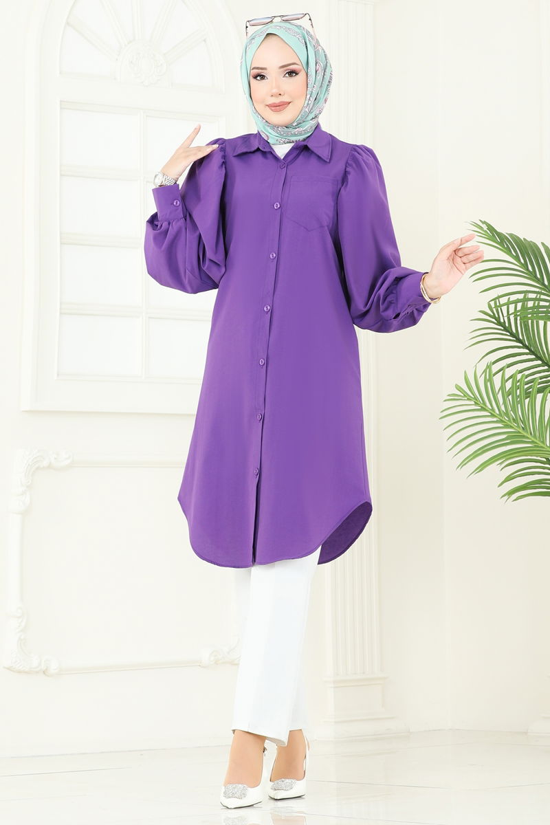 Balon Kollu Tesettür Tunik 3039KTR750-MS Mor