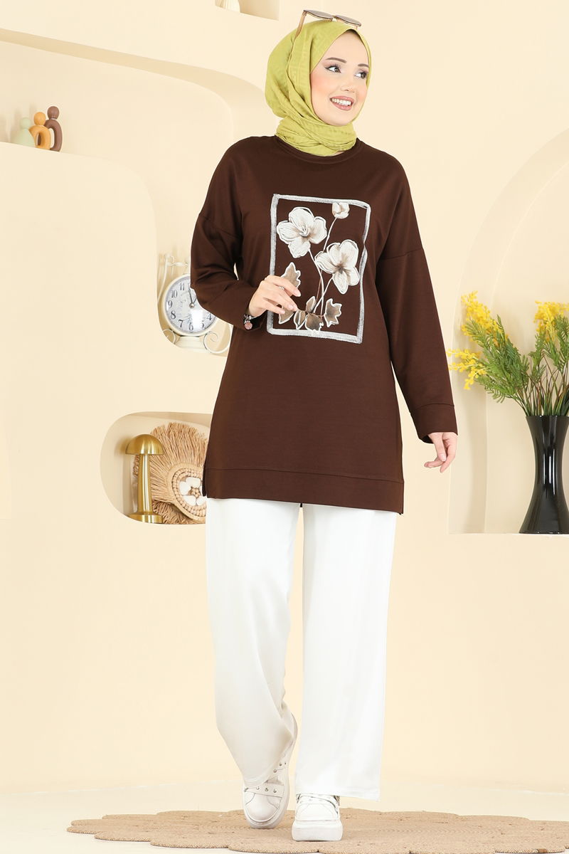 Baskı Detaylı Kristal Takım 3998UZ662-MS Kahve&Ekru