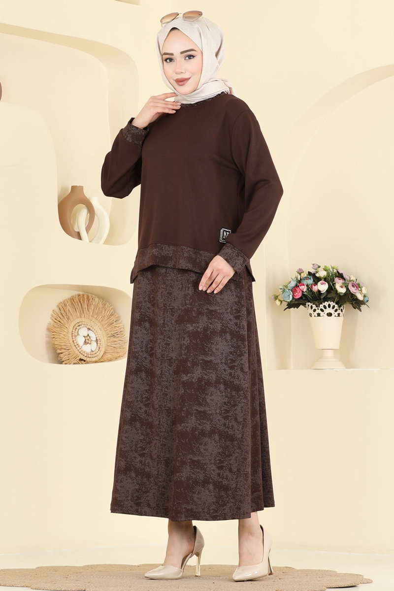Baskı Detaylı Modal Takım 2602TPK1167-MS Kahve
