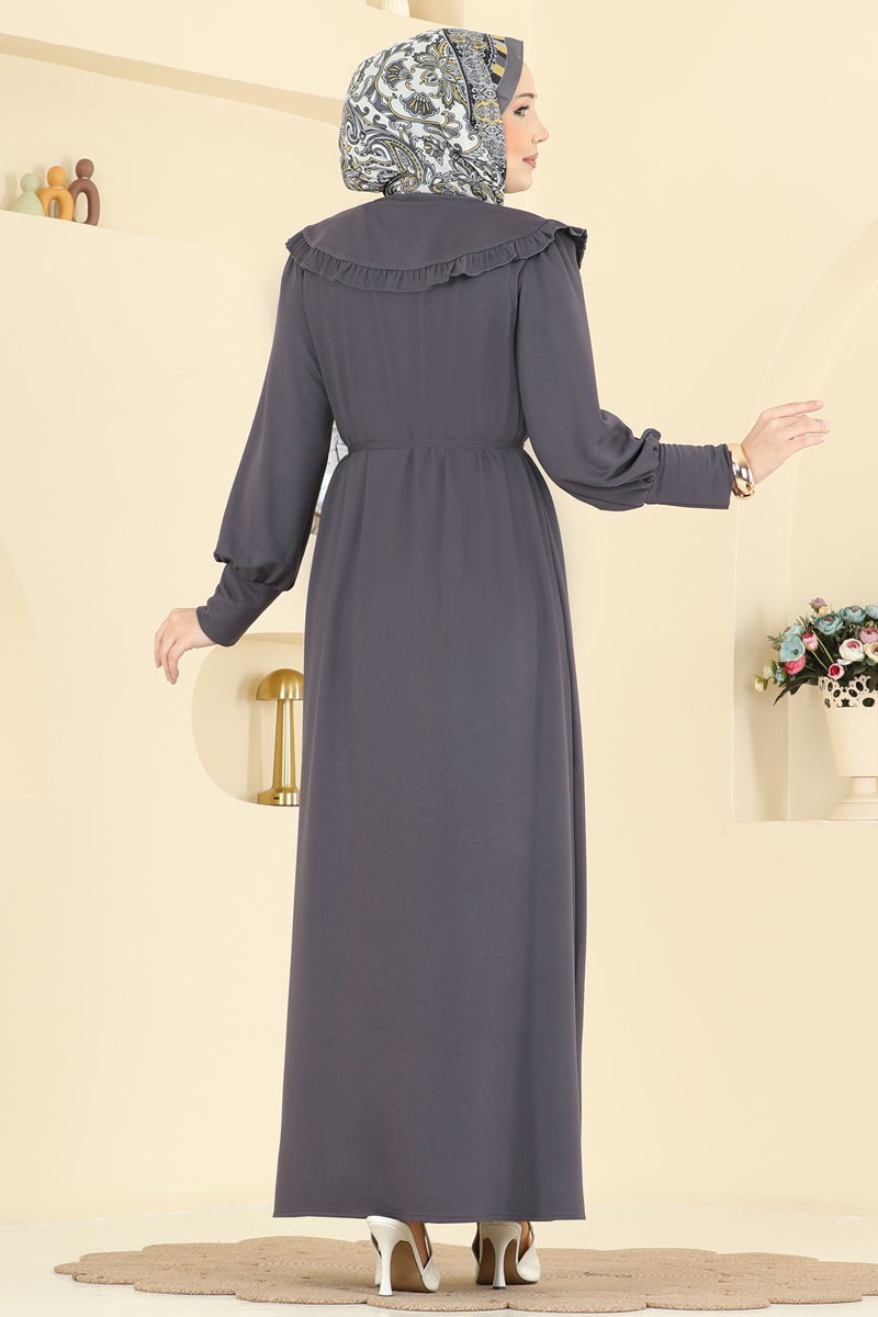 Antrasit Bebe Yaka Kristal Tasarım Elbise