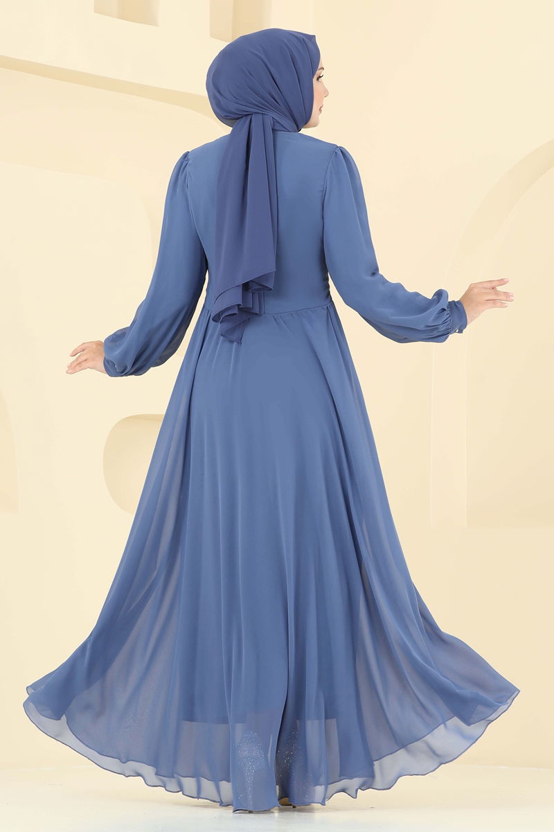 Indigo Şifon Abiye Elbise Detayları