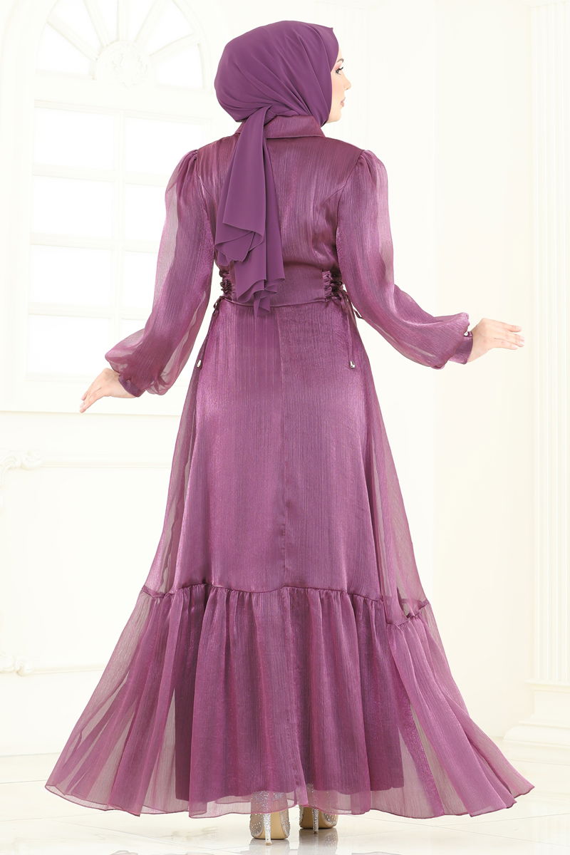 Beli Bağcıklı Abiye Elbise 8038AB368-MS Koyu Lila