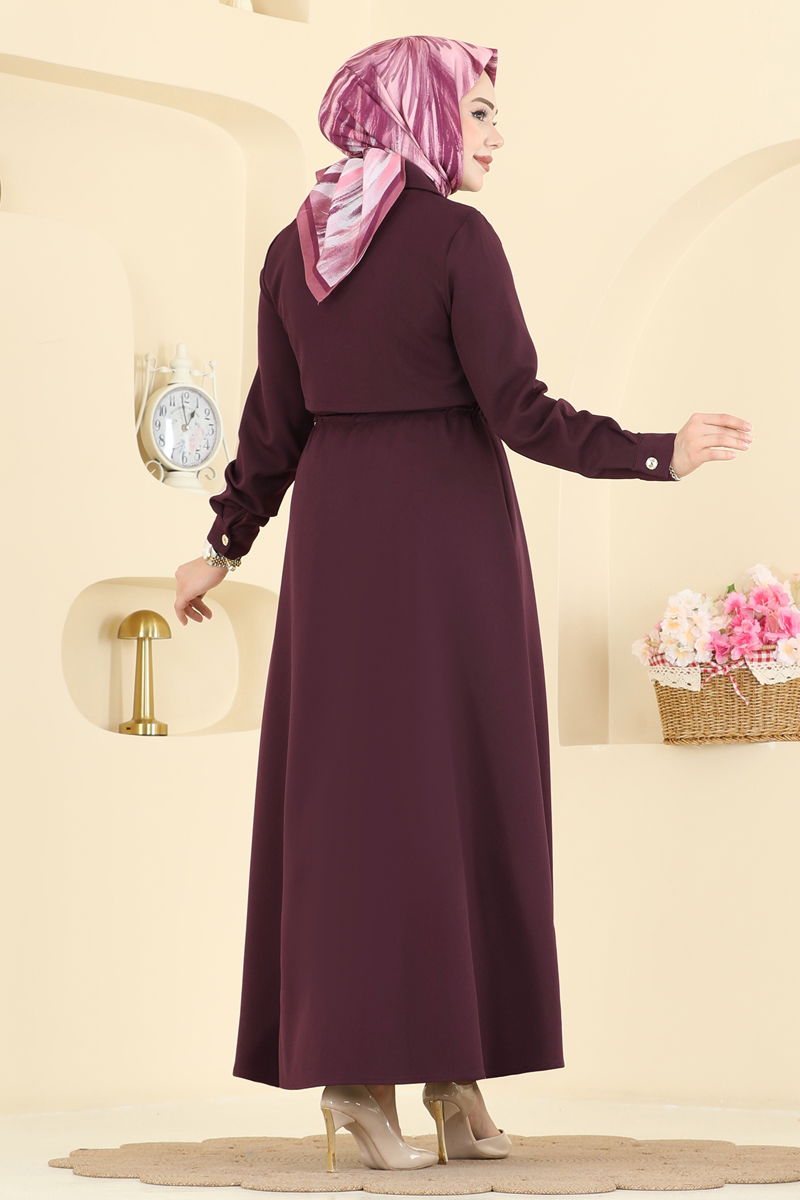 The Dress is a modest wear model suitable for all seasons. Made from delicate Dabıl fabric, this dress can be washed at 30 degrees, ensuring easy care. Its shirt collar and front button design give it a classic and elegant look. The drawstring waist adjusts to fit different body types, and the active cuff buttons enhance usability. Its unlined structure offers a lightweight and comfortable experience. The product displayed is in size 38.