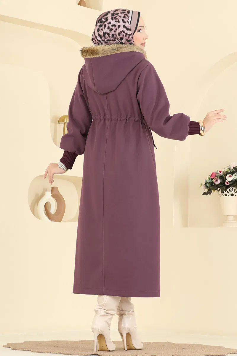 Beli Bağcıklı Kaşe Kaban 6265BSK463-MS Koyu Lila