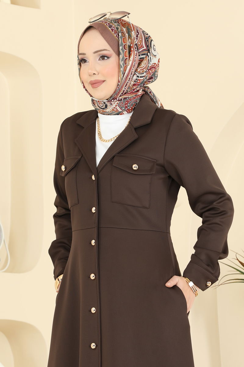Beli Dikişli Scuba Elbise 2772SL432-MS Koyu Kahve