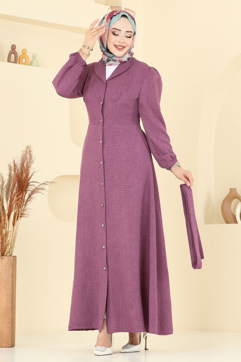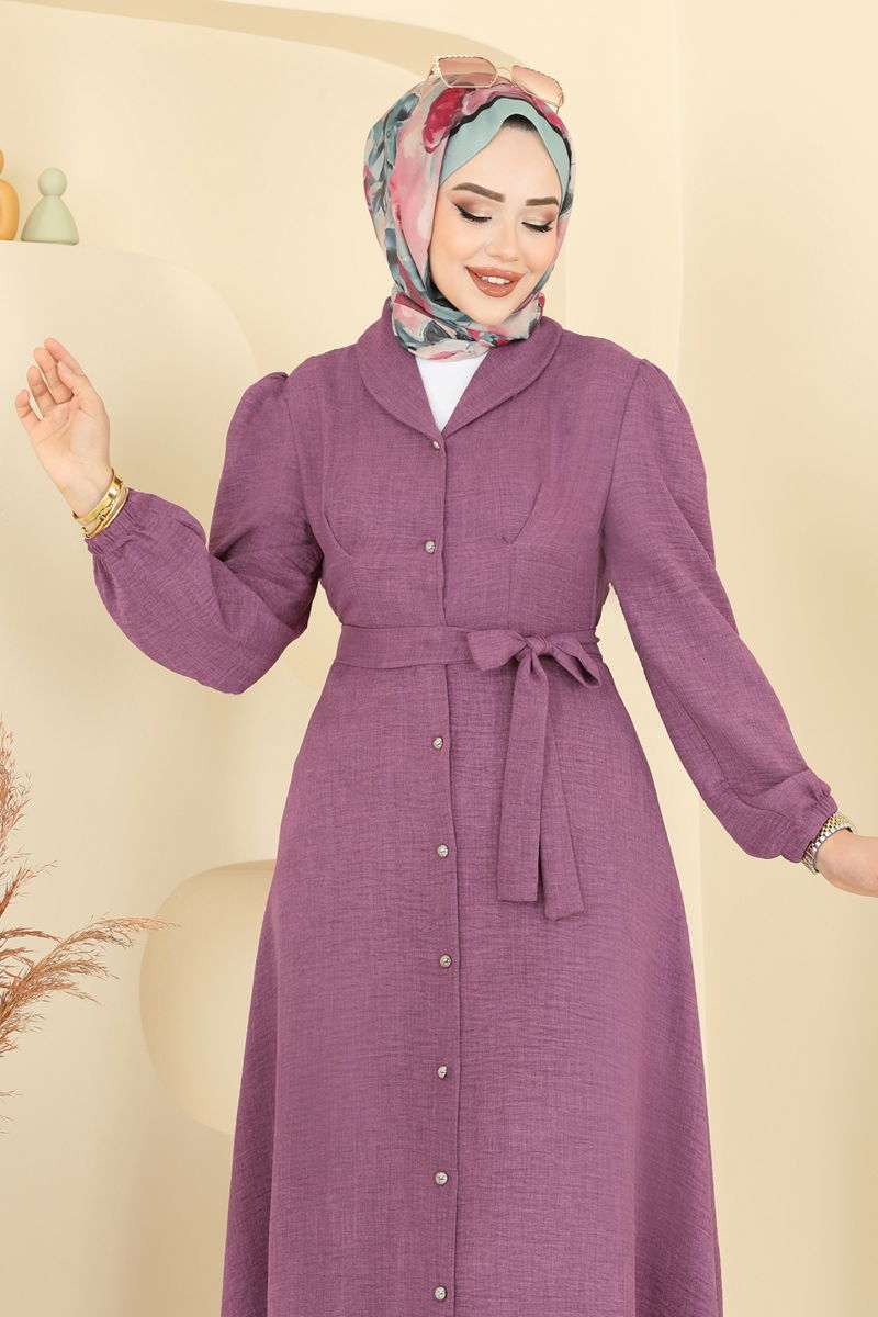 المنتج لديه ياقة مفتوحة. المنتج به أزرار من الأمام. غير مبطنة. المنتج يحتوي على حزام خصر مُخاط. السوار مطاطي. قد يكون هناك اختلاف في الدرجة اللونية في المنتج بسبب التقاط الصور الفوتوغرافية.