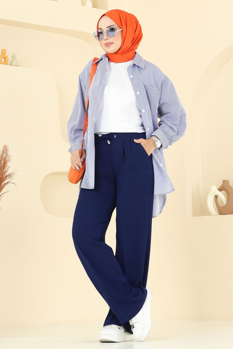 Ürün Detayları: Moda dünyasındaki yeni sezon tesettür trendlerinden biridir. Astarı bulunmamaktadır. Ayarlanabilir bağcıklı, kullanımı seçmeli. Yan cepleri mevcuttur. Pantolonun bel kısmı elastiktir.Renk tonunda çekim koşulları nedeniyle farklılıklar gözlenebilir.