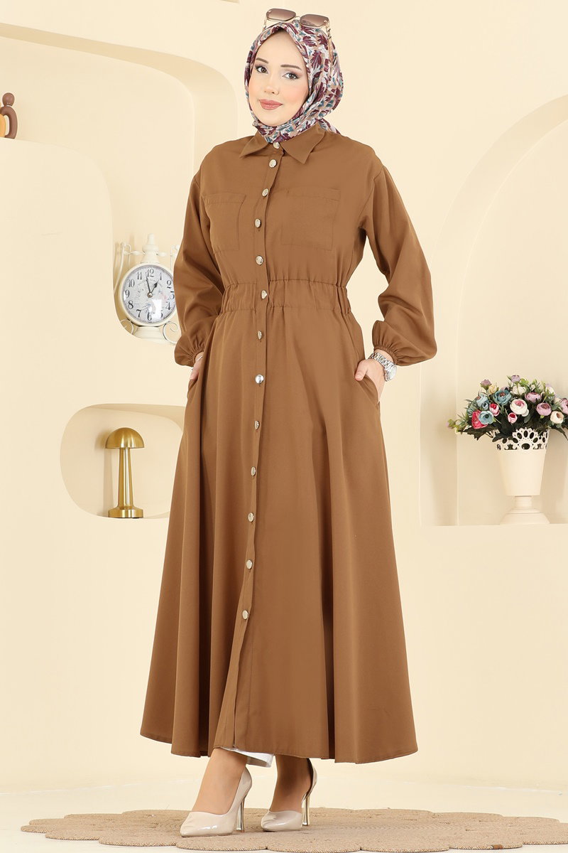 Beli Lastikli Terikoton Elbise 5071DNZ1187-MS Taba