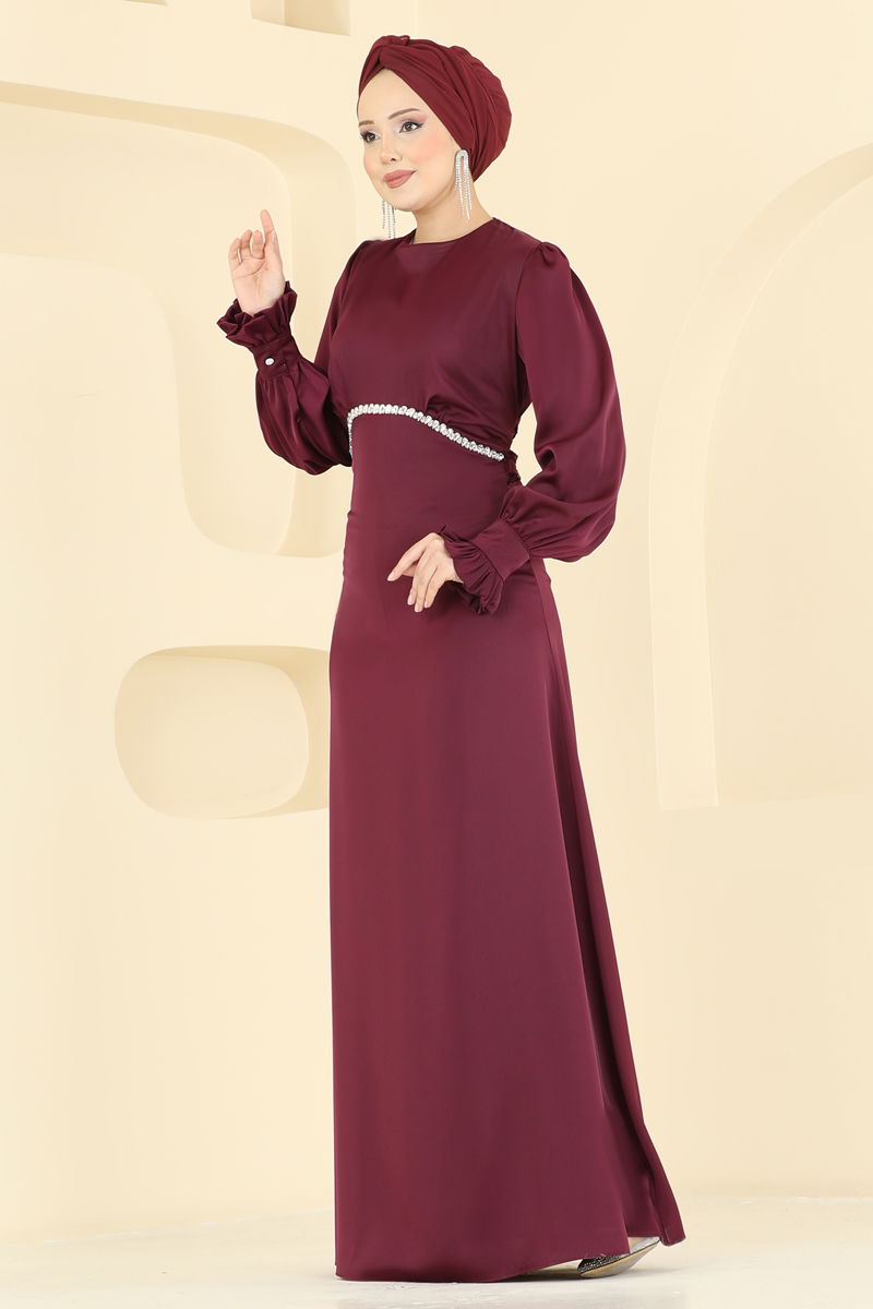 Beli Taşlı Saten Abiye 6247BSK463-MS Mürdüm