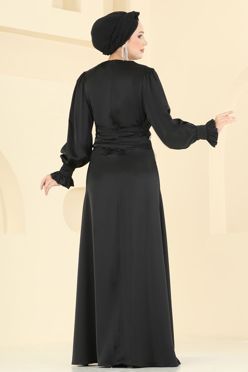 Beli Taşlı Saten Abiye 6247BSK463-MS Siyah