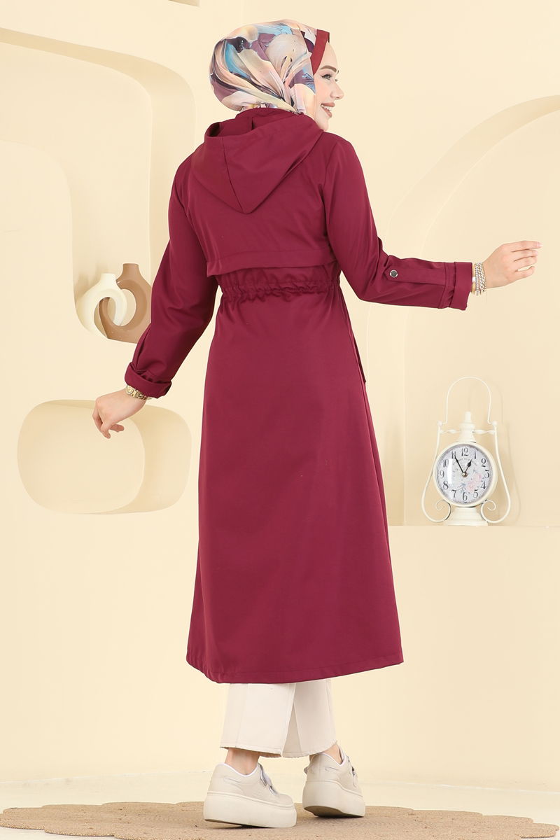 Beli Tünel Detaylı Trençkot 3069KTR750-MS Bordo