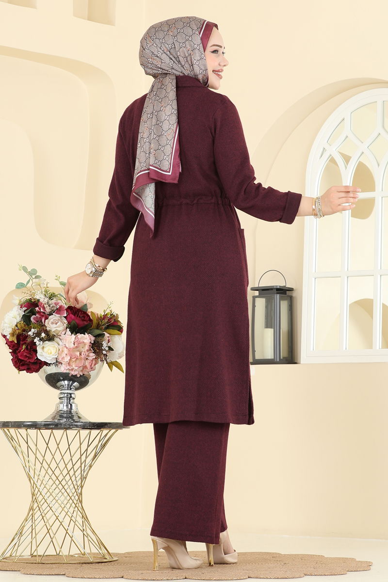 Beli Tünelli Balıksırtı Takım 24081UKBK1160-MS Bordo