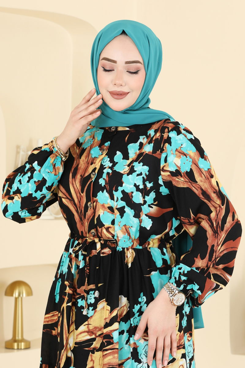Ürün Detayları: Tesettür moda tasarımının yeni ürünü. Beli ayarlanabilir ip ile tasarlanmıştır. Bisiklet yaka stili mevcuttur. Elbise ön kısmından düğmeli yapılma özelliğine sahiptir. Kol ucu lastikli yapıdadır.Renk tonlarında çekim koşulları nedeniyle farklılık gösterebilir.