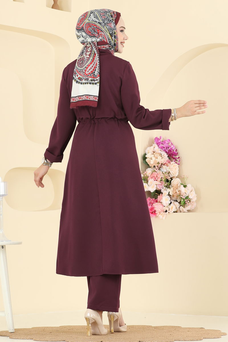 Product Feature : It is a new season hijab fashion product. It has a laced waist. The product has a Judge collar. Unlined. The product has a zipper at the From the front part. Snap details are active. Pocket detail is an accessory. The waist of the trousers is elastic. There may be a tonal difference in the product due to concept photo shoots.
