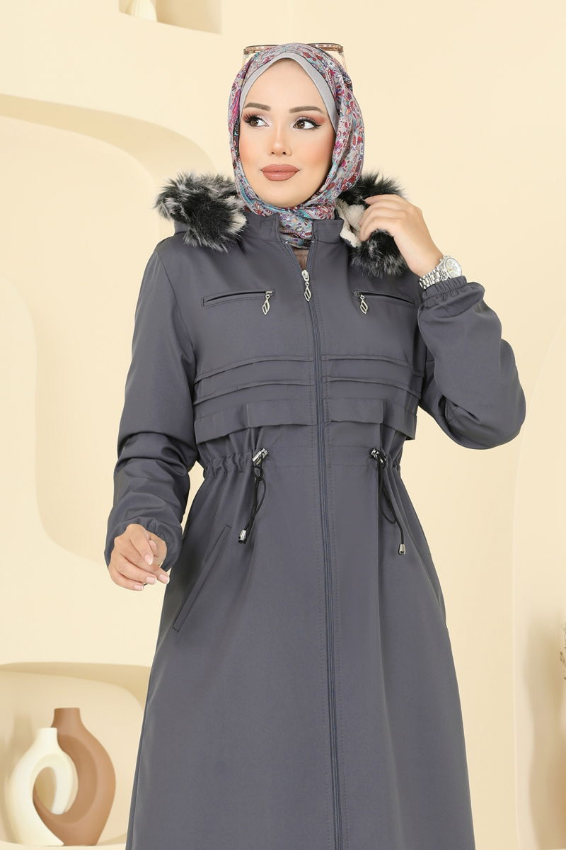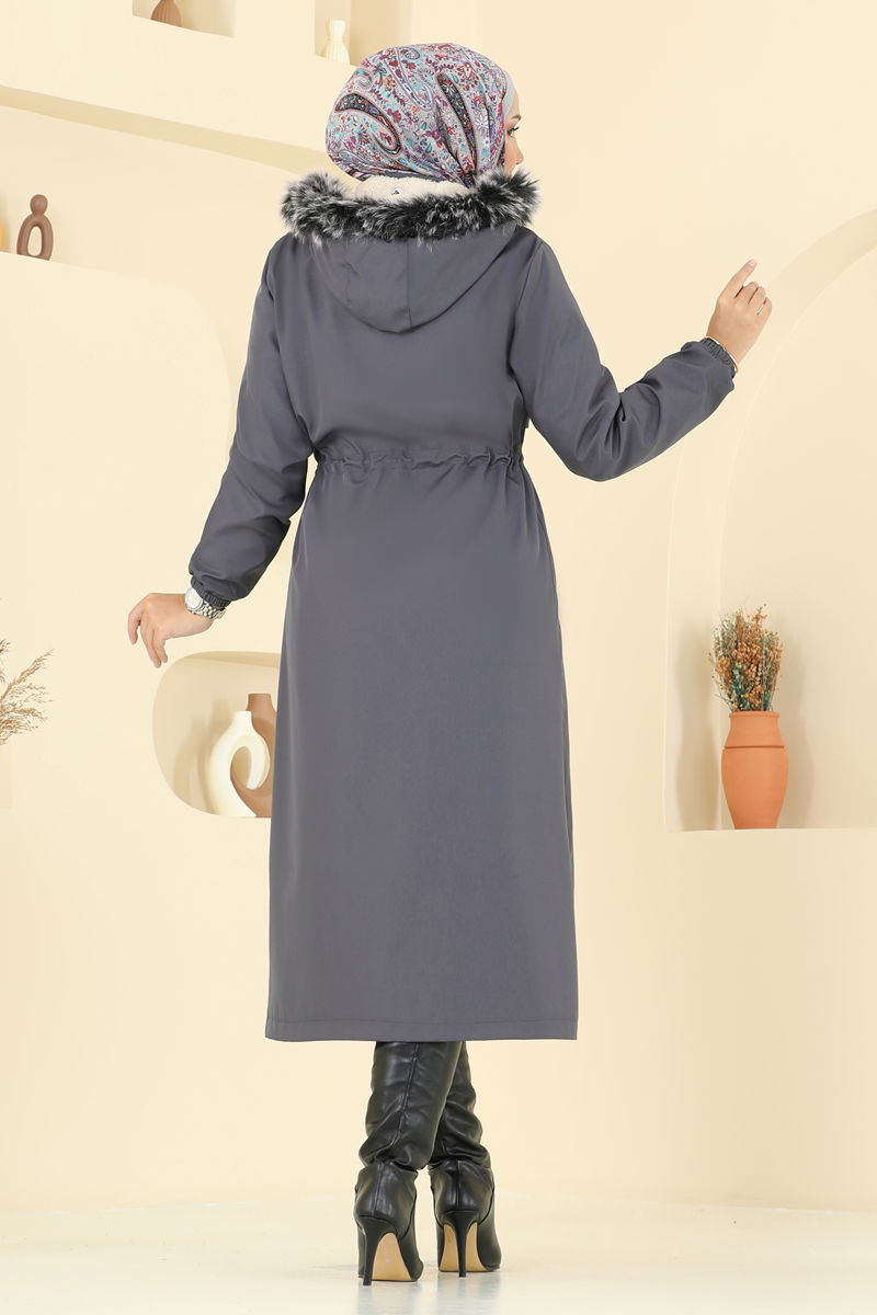 Beli Tünelli Kürklü Trençkot 2814MSA980-MS Antrasit