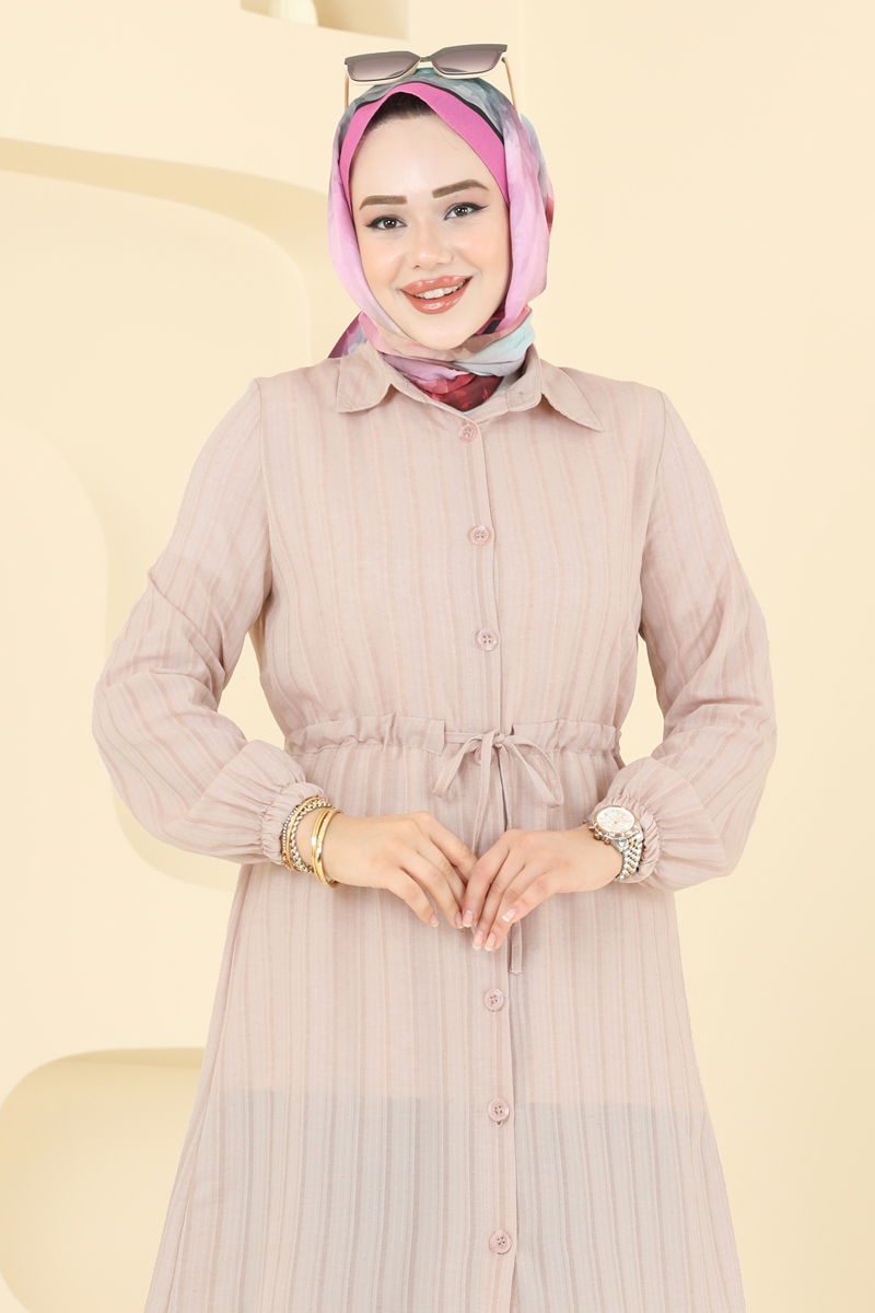 Product Feature : It is a new season hijab fashion product. It has a laced waist. The product has a Shirt collar. The product has From the front buttons. Unlined. The cuff is rubberized. There may be a tonal difference in the product due to concept photo shoots.
