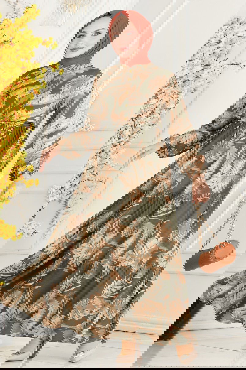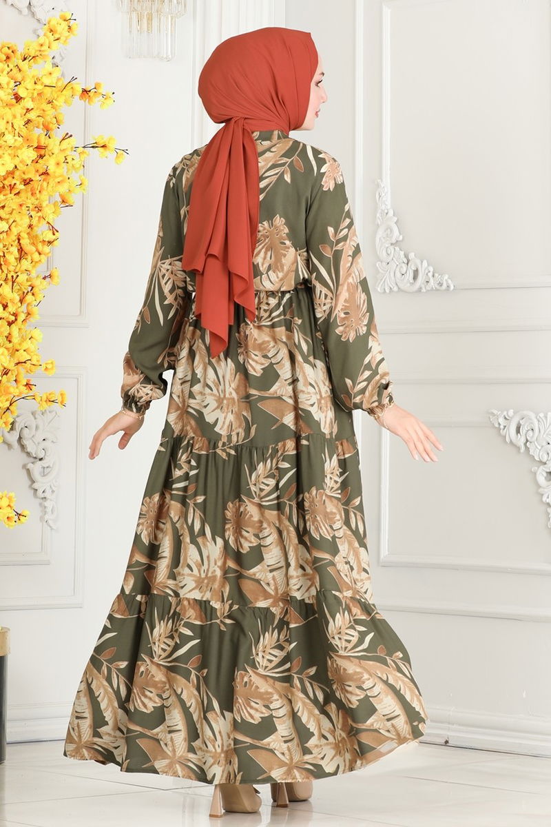 Beli Tünelli Viskon Elbise 7119BG354-MS Haki